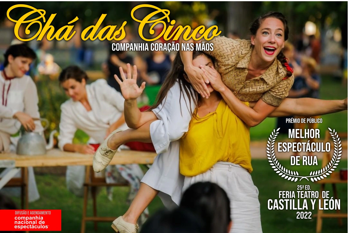 Chá das Cinco - Peça para quatro amigas mais uma que nunca mais chega é um espetáculo performativo de circo, utilizando qualquer espaço como palco. Procura a interacção com o público de todas as idades e expressa-se através da dança, música, clown, mímica, equilíbrios, aéreos e manipulação de objectos.